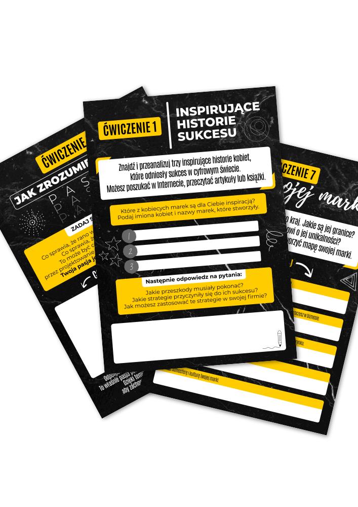Wraz z ebookiem otrzymujesz Workbook w dwóch wersjach: pełnokolorowej oraz specjalnie zoptymalizowanej do druku. Pisanie ręczne ułatwia porządkowanie myśli, stymuluje kreatywność i pozwala fizycznie „przerobić” proces budowania marki.